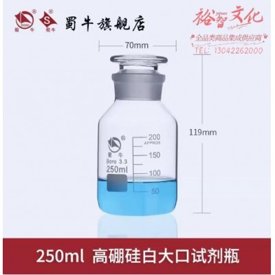 蜀牛 高硼硅白大口棕色耐高温玻璃广口瓶 250ml【透明】 高硼硅试剂瓶 (SKU:yzwhyp941991