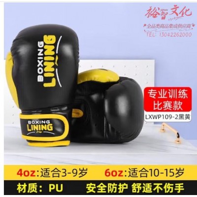 李宁(LI-NING)儿童拳击手套拳击训练器材少年散打比赛锻炼男孩女跆拳道129黑6OZ (SKU:yzwhyp942014