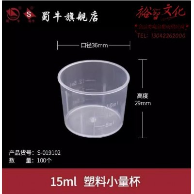 蜀牛 塑料烧杯带刻度塑料杯带柄透明实验室用化学计量杯 15ml 塑料小量杯 100个装 (SKU:yzwhyp942026
