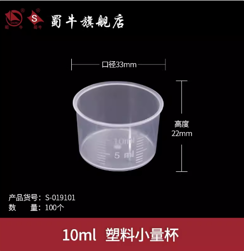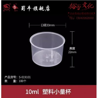 蜀牛 塑料烧杯带刻度塑料杯带柄透明实验室用化学计量杯 10ml 塑料小量杯 100个装 (SKU:yzwhyp942027