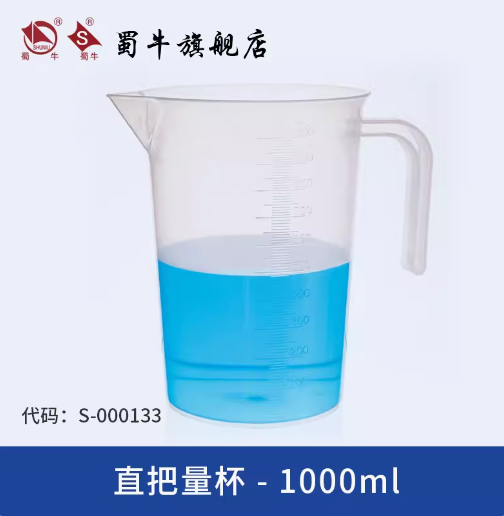蜀牛 塑料烧杯带刻度塑料杯带柄透明实验室用化学计量杯 1000ml(直把) 塑料量杯(5个起订) (SKU:yzwhyp942044