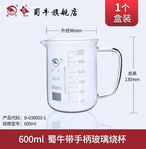 蜀牛 600ml 带手柄玻璃烧杯(1个盒装) (SKU:yzwhyp942137
