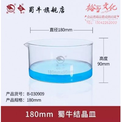 首页 > 仪器仪表 > 生物、医学样品制备设备 > 蜀牛 玻璃结晶皿耐高温水槽具嘴高硼硅平底结晶皿 180mm 玻璃结晶皿 (SKU:yzwhyp942144