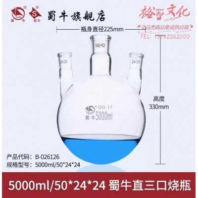 蜀牛 直三口烧瓶三口圆底烧瓶反应瓶 5000ml/50*24*24 直三口烧瓶 (SKU:yzwhyp942153