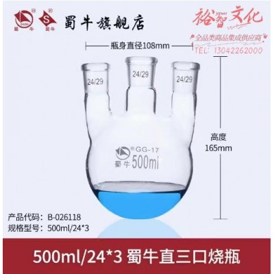 蜀牛 直三口烧瓶三口圆底烧瓶反应瓶 500ml/24*3 直三口烧瓶 (SKU:yzwhyp942161
