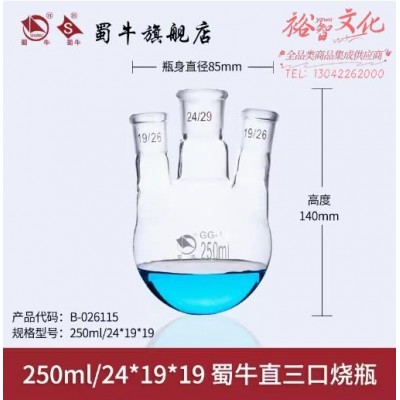 蜀牛 直三口烧瓶三口圆底烧瓶反应瓶 250ml/24*19*19 直三口烧瓶 (SKU:yzwhyp942163