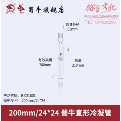 首页 > 仪器仪表 > 生物、医学样品制备设备 > 蜀牛 冷凝回流管实验室冷凝管 200mm/24*24 直形冷凝管 (SKU:yzwhyp942172
