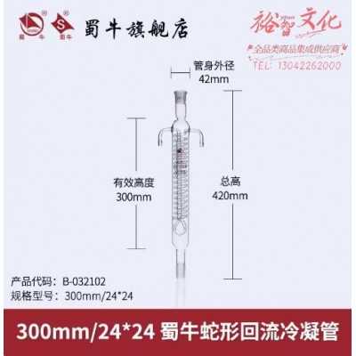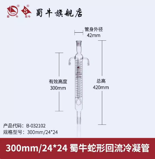 蜀牛 冷凝回流管实验室冷凝管 300mm/24*24 蛇形回流冷凝管 (SKU:yzwhyp942175