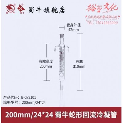 蜀牛 冷凝回流管实验室冷凝管 200mm/24*24 蛇形回流冷凝管 (SKU:yzwhyp942176