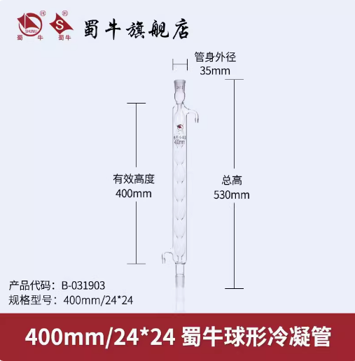 蜀牛 冷凝回流管实验室冷凝管 400mm/24*24 球形冷凝管 (SKU:yzwhyp942185