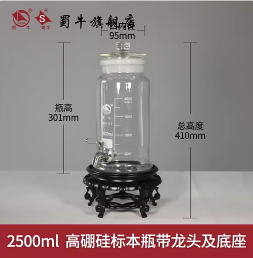 蜀牛 高硼硅玻璃标本瓶实验室样瓶磨砂广口储存瓶 2500ml(带龙头及底座) 高硼硅标本瓶 (SKU:yzwhyp942208