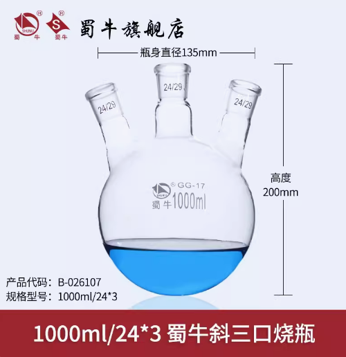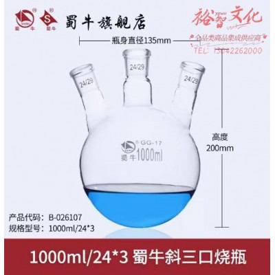 蜀牛 斜三口烧瓶 三口反应瓶圆底烧瓶 1000ml/24*3 斜三口烧瓶 (SKU:yzwhyp942236