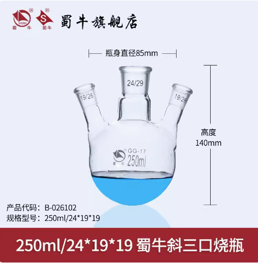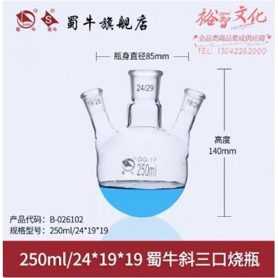 蜀牛 斜三口烧瓶 三口反应瓶圆底烧瓶 250ml/24*19*19 斜三口烧瓶 (SKU:yzwhyp942241
