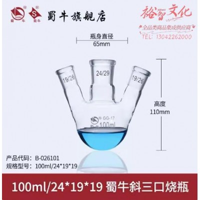 蜀牛 斜三口烧瓶 三口反应瓶圆底烧瓶 100ml/24*19*19 斜三口烧瓶 (SKU:yzwhyp942242