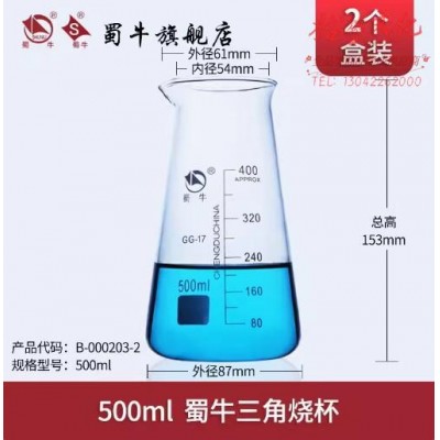 蜀牛 三角烧杯高硼硅玻璃杯牛奶杯刻度分酒杯 500ml 三角烧杯(2个装) (SKU:yzwhyp942258