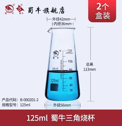 蜀牛 三角烧杯高硼硅玻璃杯牛奶杯刻度分酒杯 125ml 三角烧杯(2个装) (SKU:yzwhyp942259