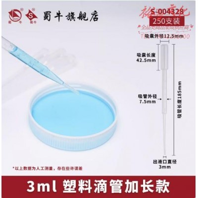 蜀牛 塑料滴管一次性滴管巴氏滴定管实验室移液管无菌滴管 3ml加长款(250支装) 塑料滴管 (SKU:yzwhyp942268