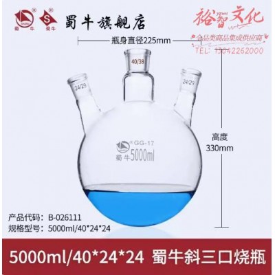 蜀牛 斜三口烧瓶 三口反应瓶圆底烧瓶 5000ml/40*24*24 斜三口烧瓶 (SKU:yzwhyp942288