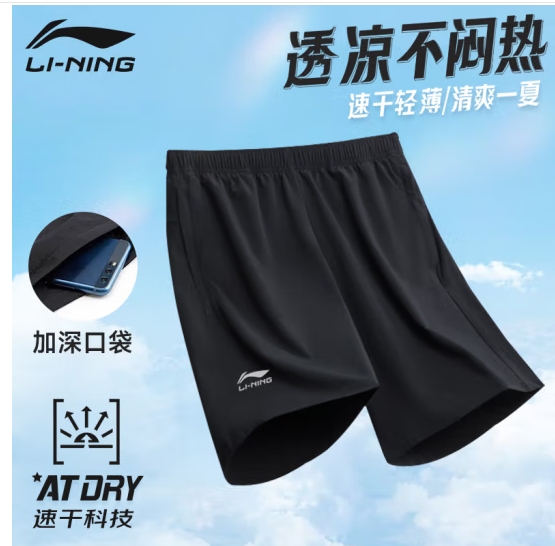 李宁(LI-NING)运动短裤男夏季透气薄款宽松休闲速干跑步裤子沙滩裤健身五分短裤XL (SKU:yzwhyp942300