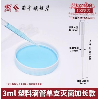 蜀牛 塑料滴管一次性滴管巴氏滴定管实验室移液管无菌滴管 3ml 加长款(100支装) 塑料滴管(单支灭菌) (SKU:yzwhyp942322