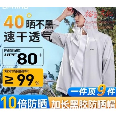 李宁防晒衣男女夏季黑胶连帽防紫外线冰丝薄款透气防晒服户外钓鱼外套 (SKU:yzwhyp942325