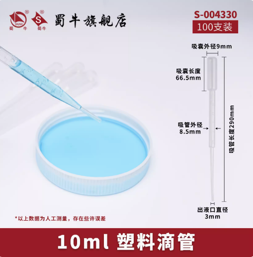 蜀牛 塑料滴管一次性滴管巴氏滴定管实验室移液管无菌滴管 10ml(100支装) 塑料滴管 (SKU:yzwhyp942327
