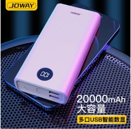 乔威 JP205 手机充电宝20000毫安时大容量聚合物移动电源LED数显大容量3输入 苹果/华为/手机平板通用 白色(SKU:yzwhyp942405