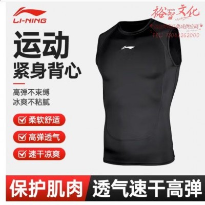 李宁紧身背心男无袖健身上衣t恤运动足篮球训练跑步速干高弹打底 (SKU:yzwhyp942406