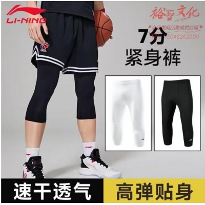 李宁(LI-NING)篮球紧身裤高弹训练裤七分压缩裤男运动打底裤跑步短裤 (SKU:yzwhyp942475