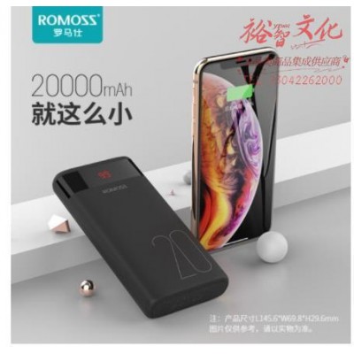 罗马仕智能数显充电宝20000毫安时大容量移动电源Type-C输入精致款2.1A快充适用于苹果华为小米手机平板(SKU:yzwhyp942537