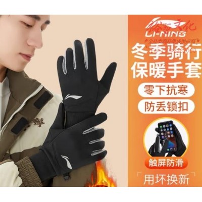 李宁(LI-NING)骑行手套冬季男女保暖防寒滑雪电瓶车自行摩托车防风触屏运动手套 (SKU:yzwhyp942585