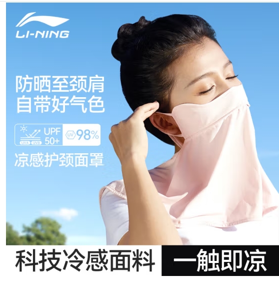 李宁冰丝防晒面罩口罩全脸防紫外线防风骑行面罩一体护颈户外透气遮阳 (SKU:yzwhyp942596