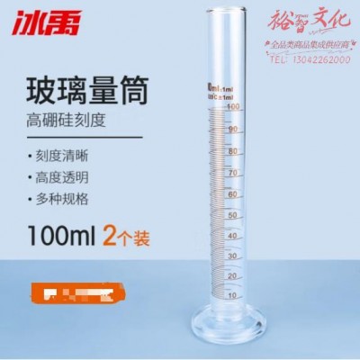 冰禹 BYrl-202 高硼硅玻璃量筒 实验室量筒 玻璃刻度量筒 100ml(2个装) (SKU:yzwhyp942752