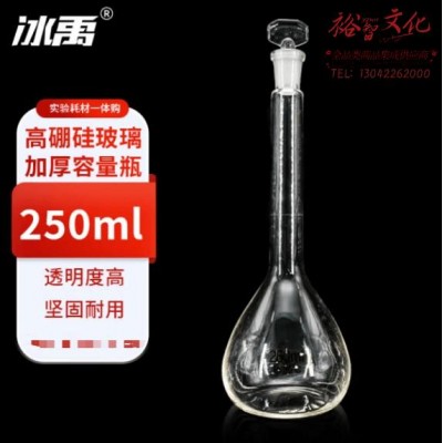冰禹 BY-7011 加厚玻璃容量瓶 实验室器皿容量瓶 250mL透明 (SKU:yzwhyp942770