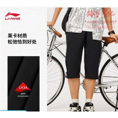 李宁排湿速干七分运动裤男子24夏季新款常规直筒梭织七分裤子AKQU011 黑色-1 XL (SKU:yzwhyp942784