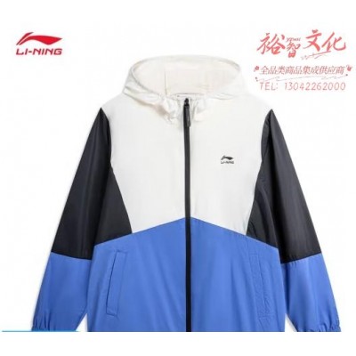 李宁防晒宽松运动风衣男24春夏新款LOGO复古撞色拼接连帽挺括外套夹克 乳白色虹蓝色拼色组合-5 XL (SKU:yzwhyp942809