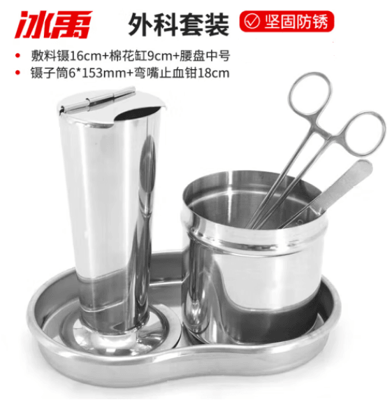 冰禹 BYS-284 不锈钢镊子 套装敷料镊棉花缸腰盘镊子筒止血钳 (SKU:yzwhyp942864