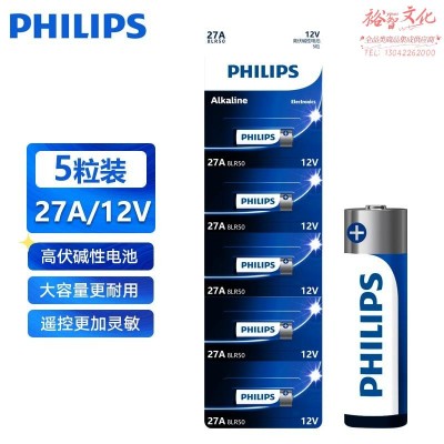 飞利浦 27A12V电池5粒碱性高伏电池适用门禁门铃遥控器/车辆防盗器/电动券帘门 干电池27a(SKU:yzwhyp943009