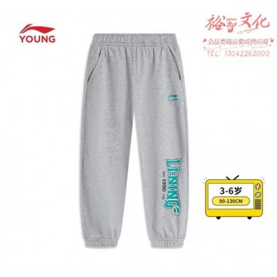 李宁童装卫裤男小童夏季薄款纯色简约亲肤字母印花束脚运动裤儿童长裤 花灰-3 110 (SKU:yzwhyp943047