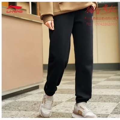 李宁卫裤女子春季新款刺绣标志束脚长裤宽松休闲跑步健身运动裤子 【常规】黑色C-3 L (SKU:yzwhyp943097