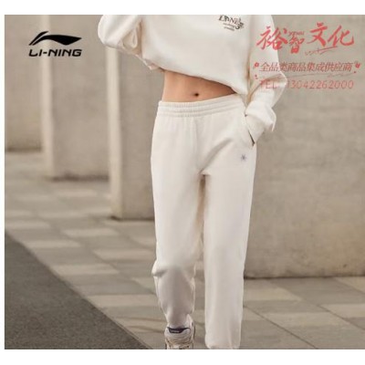 李宁加绒保暖卫裤女子秋冬新款束脚运动裤子 【加绒】米白色-2 S (SKU:yzwhyp943102