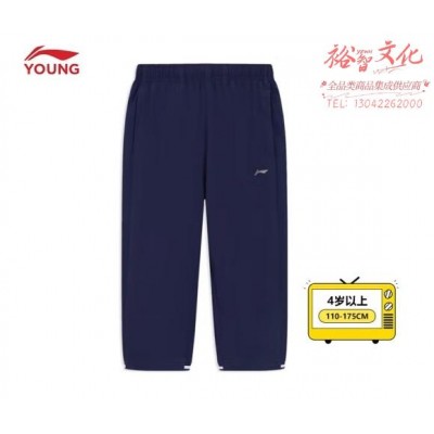 李宁(LI-NING)速干凉爽冰感丨七分运动裤男童24新款束脚宽松休闲简约运动裤 水手蓝-2 150 (SKU:yzwhyp943129