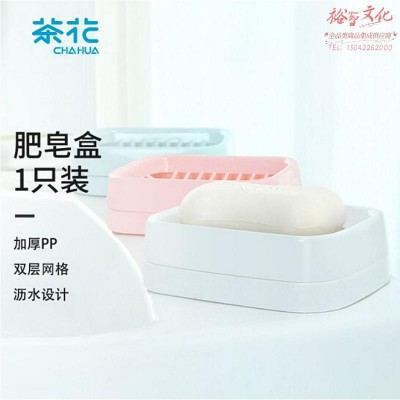 茶花 肥皂盒皂碟香皂架子肥皂架双层沥水香皂盒子白色1只装 2213(SKU:yzwhyp943137