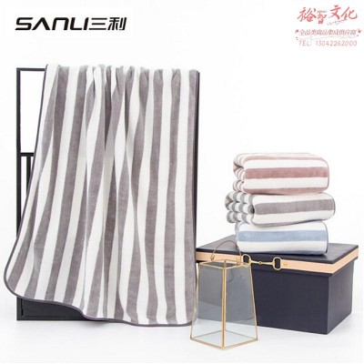 三利 柔软吸水速干大浴巾条纹洗澡巾裹身巾70*140cm 银灰色(SKU:yzwhyp943150