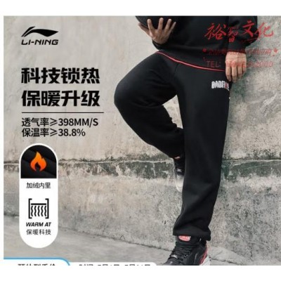 李宁反伍丨加绒保暖卫裤男子秋冬新款刺绣束脚运动裤子AKLT879 【加绒】黑色-6 XL (SKU:yzwhyp943198