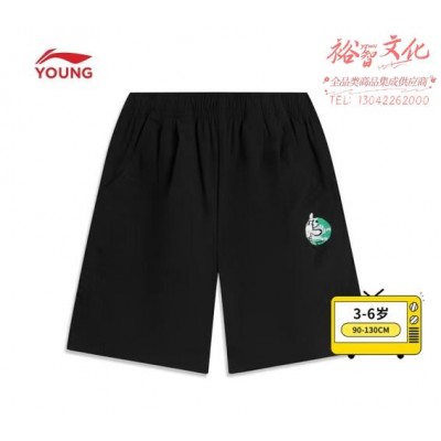 李宁童装男小童运动短裤24春夏新款工装风印花弹力运动裤YKSU033 黑色-3 130 (SKU:yzwhyp943269