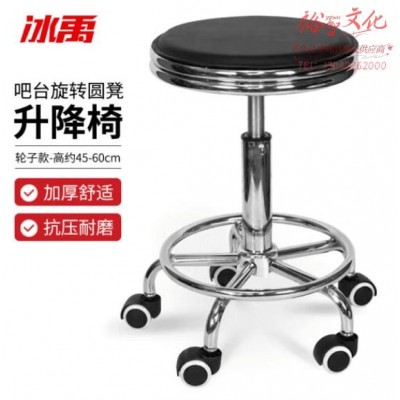 冰禹 BYlj-144 升降旋转凳 实验室办公室收银吧台圆凳 黑色 轮子款 (SKU:yzwhyp943338