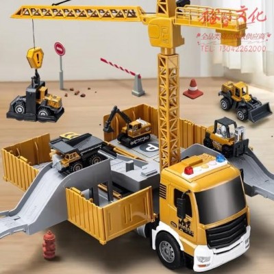 奥智嘉儿童玩具工程车超大号塔吊收纳货柜弹射轨道合金小车玩具 (SKU:yzwhyp943475