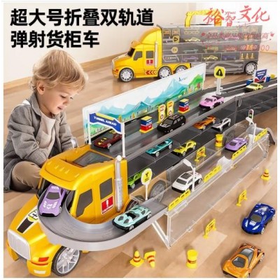 奥智嘉儿童玩具变形弹射大卡车轨道折叠收纳货柜合金赛车 (SKU:yzwhyp943479