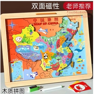 木丸子中国世界地图磁性拼图地理认知早教启蒙开发磁力玩具儿童双面地图 磁性二合一拼图 中国 世界地图 (SKU:yzwhyp943632